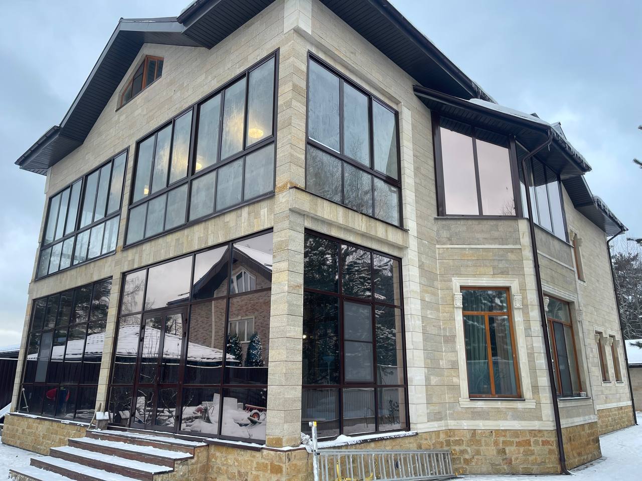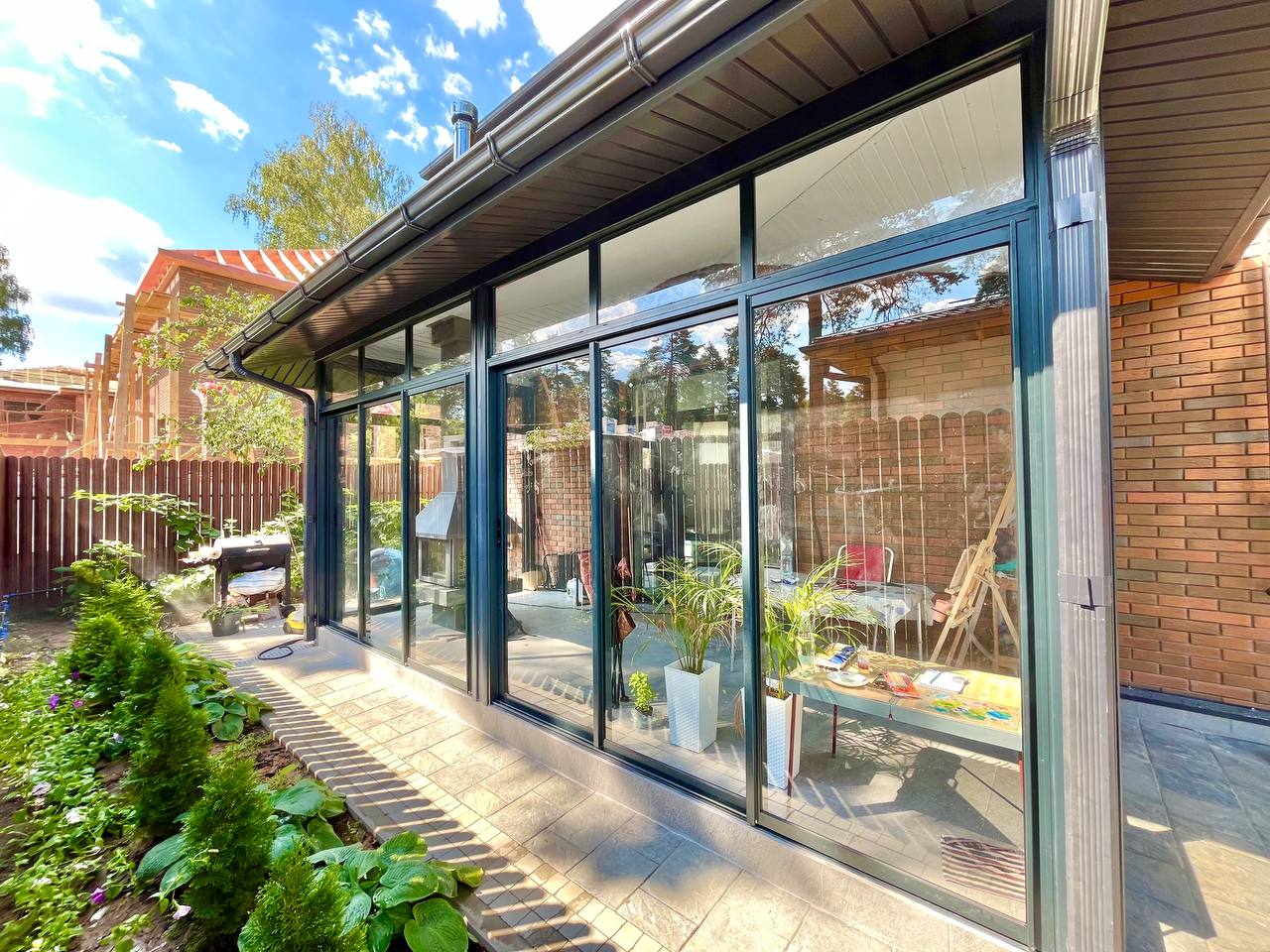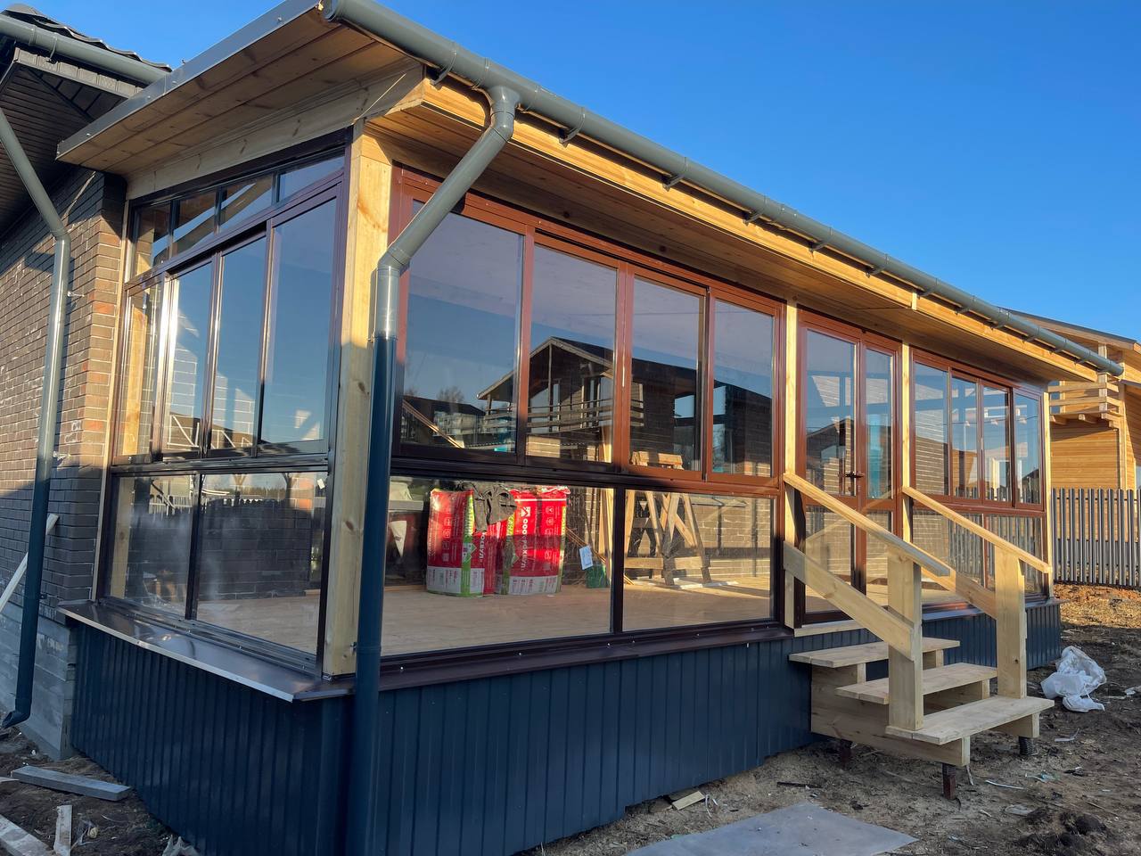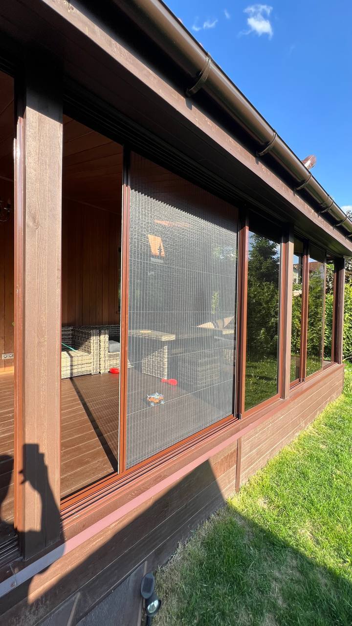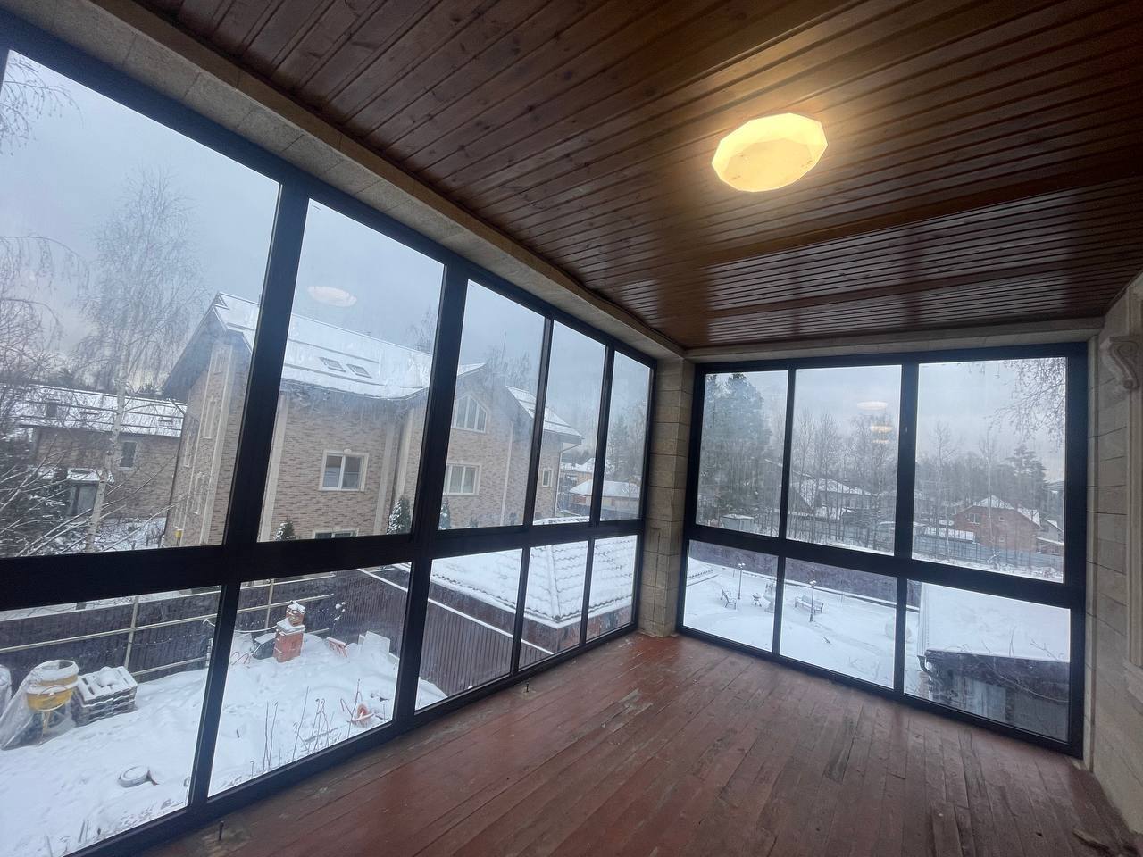 Посмотрите примеры загородного остекления выполненные компанией Окна Бум в Московской области
