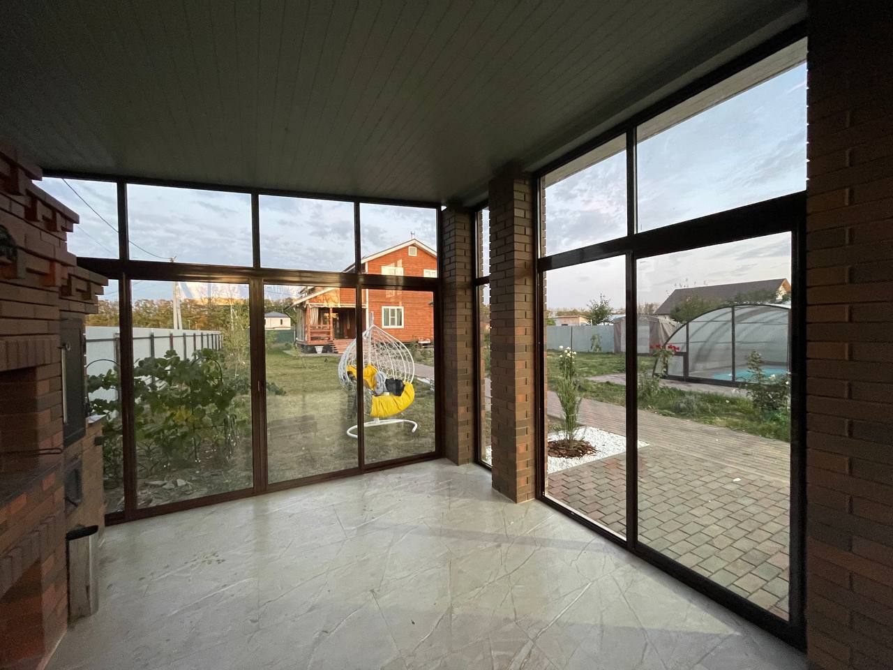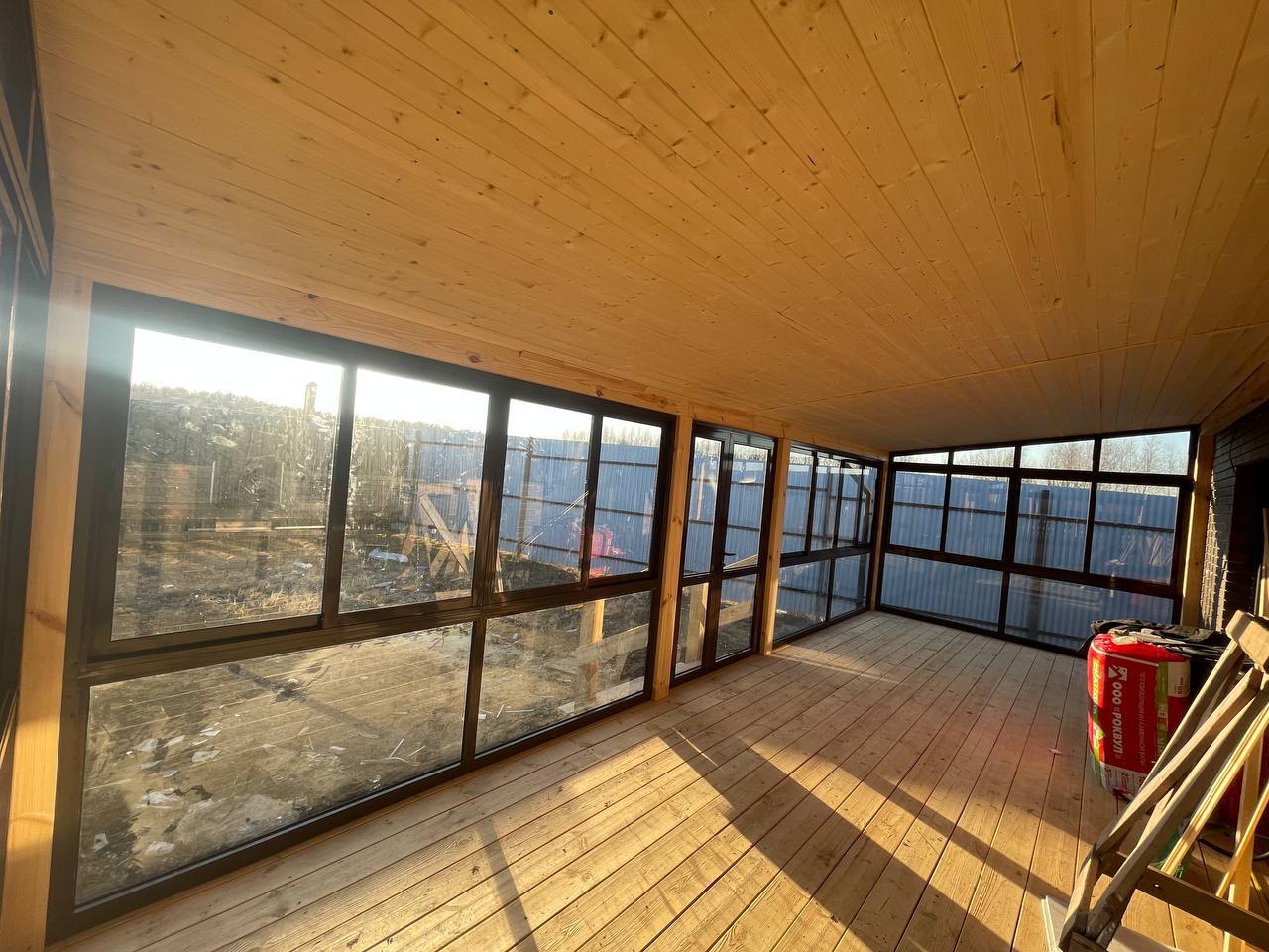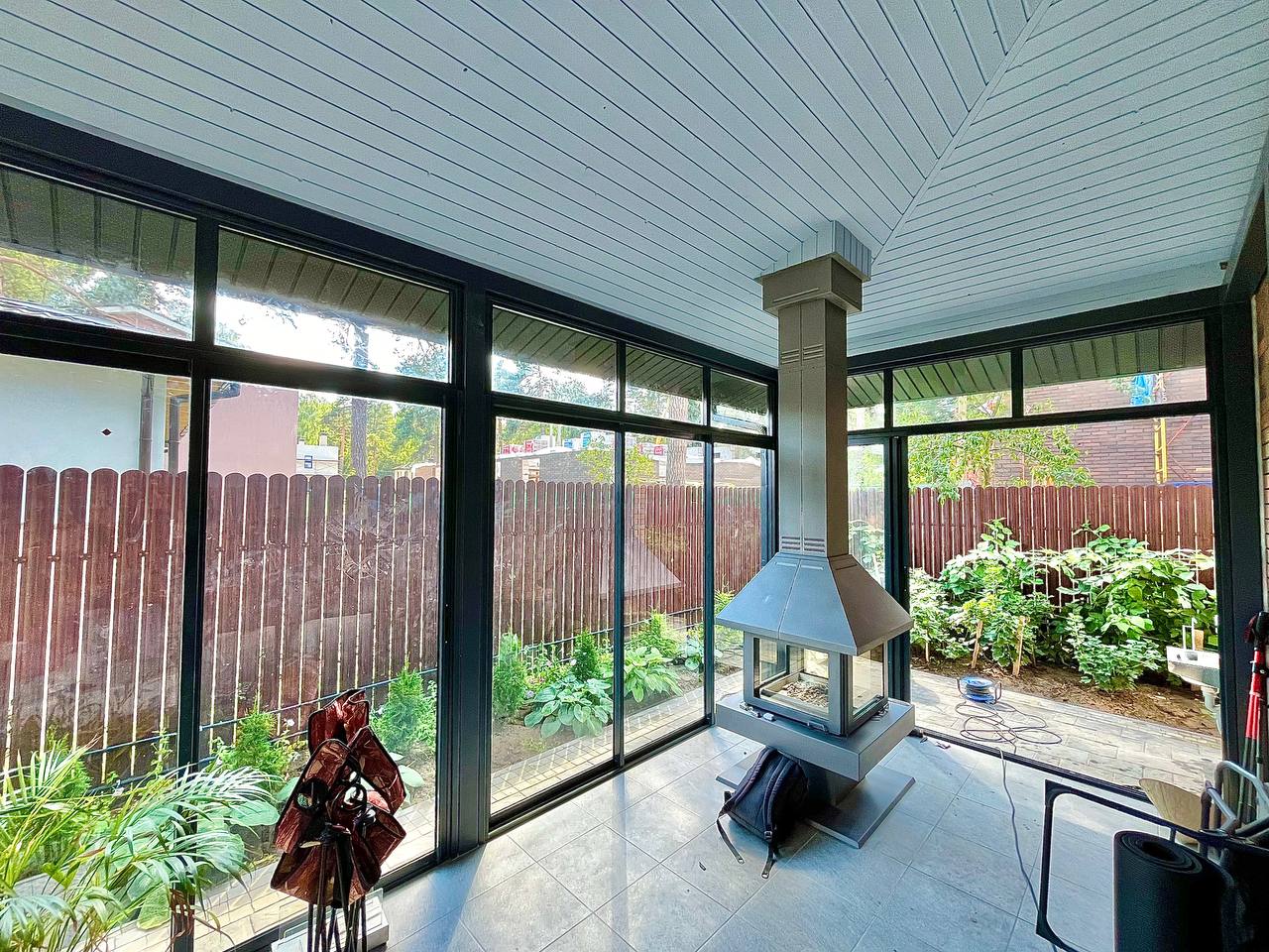 Остекление "под ключ" дома и терраса с окнами в пол, раздвижное алюминиевое холодное остекление на террасе от Рехау