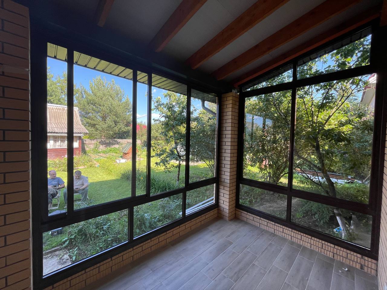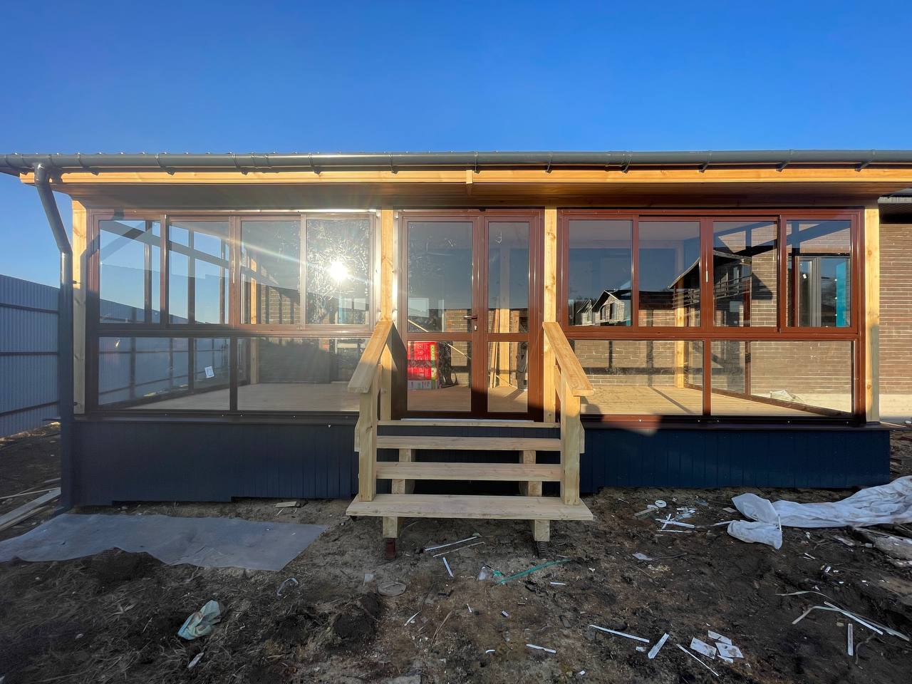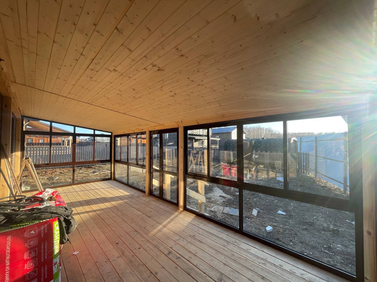 Остекление "под ключ" дома и терраса с окнами в пол, раздвижное алюминиевое холодное остекление на террасе от Рехау